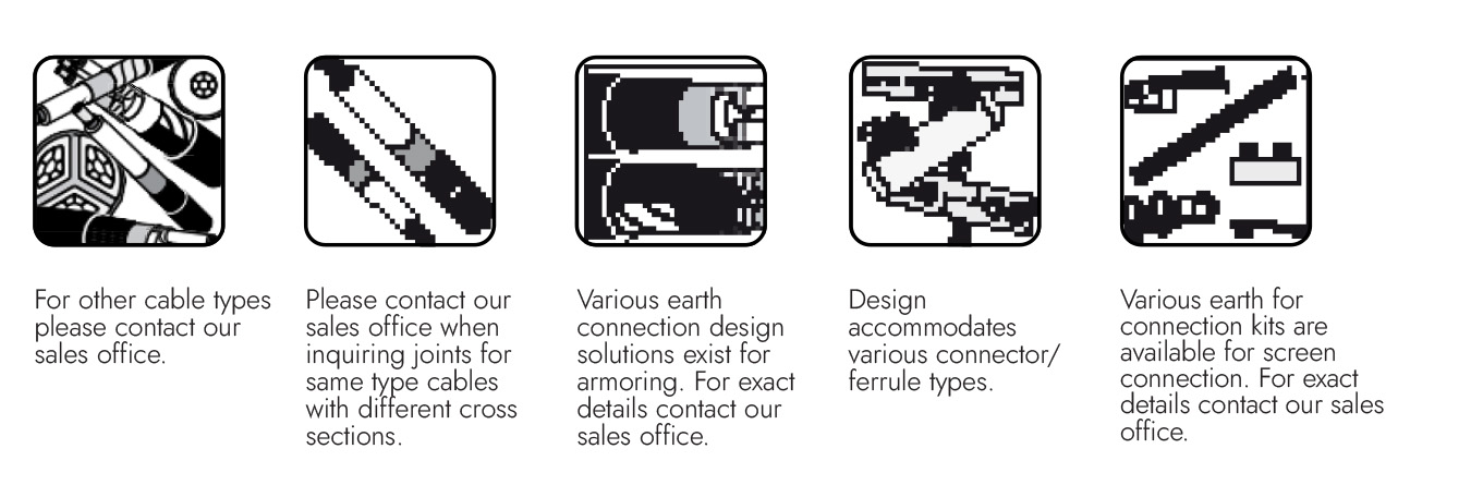 GTSIS1 heat-shrink shield break straight joints are designed for unarmored, plastic insulated cables with Cu wire or Cu/Al tape screen, to accommodate either crimped or mechanical connectors.